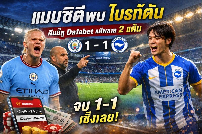 เกม แมนซิตี พบ ไบรท์ตัน ที่เอติฮัด สเตเดี้ยม จบลงด้วยผลเสมอ 1-1 แบบที่แฟนเรือใบอย่างผมต้องถอนหายใจยาว เพราะนี่คืออีกหนึ่งนัดที่ แมนฯ ซิตี้ ครองเกมแทบทุกมิติ แต่กลับเก็บได้แค่แต้มเดียว ทั้งที่โอกาสไล่จี้จ่าฝูงอยู่ตรงหน้า เกม แมนซิตี พบ ไบรท์ตัน นัดนี้จึงไม่ใช่แค่ผลเสมอธรรมดา แต่มันสะท้อนปัญหาเดิมๆ ที่เริ่มทำให้การลุ้นแชมป์ยากขึ้นทุกที