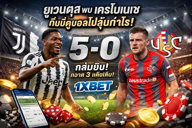 ศึก ยูเวนตุส พบ เครโมเนเซ เมื่อคืนวันที่ 12 มกราคม 2026 เป็นหนึ่งในเกมที่ดูแล้วรู้สึกได้ทันทีว่า “โมเมนตัมลุ้นแชมป์มันมาแล้วจริง ๆ” ยูเวนตุสเปิดบ้านโชว์ฟอร์มโหด ไล่ถล่มเครโมเนเซแบบไม่ไว้หน้า 5-0 เก็บสามแต้มสำคัญ ไล่หลังจ่าฝูงอินเตอร์ มิลาน เหลือเพียง 4 คะแนนเท่านั้น เกมนี้ไม่ใช่แค่ชนะขาด แต่เป็นชัยชนะที่สะท้อนความมั่นใจ ความเฉียบคม และความดุดันของม้าลายในช่วงโค้งสำคัญของฤดูกาล
